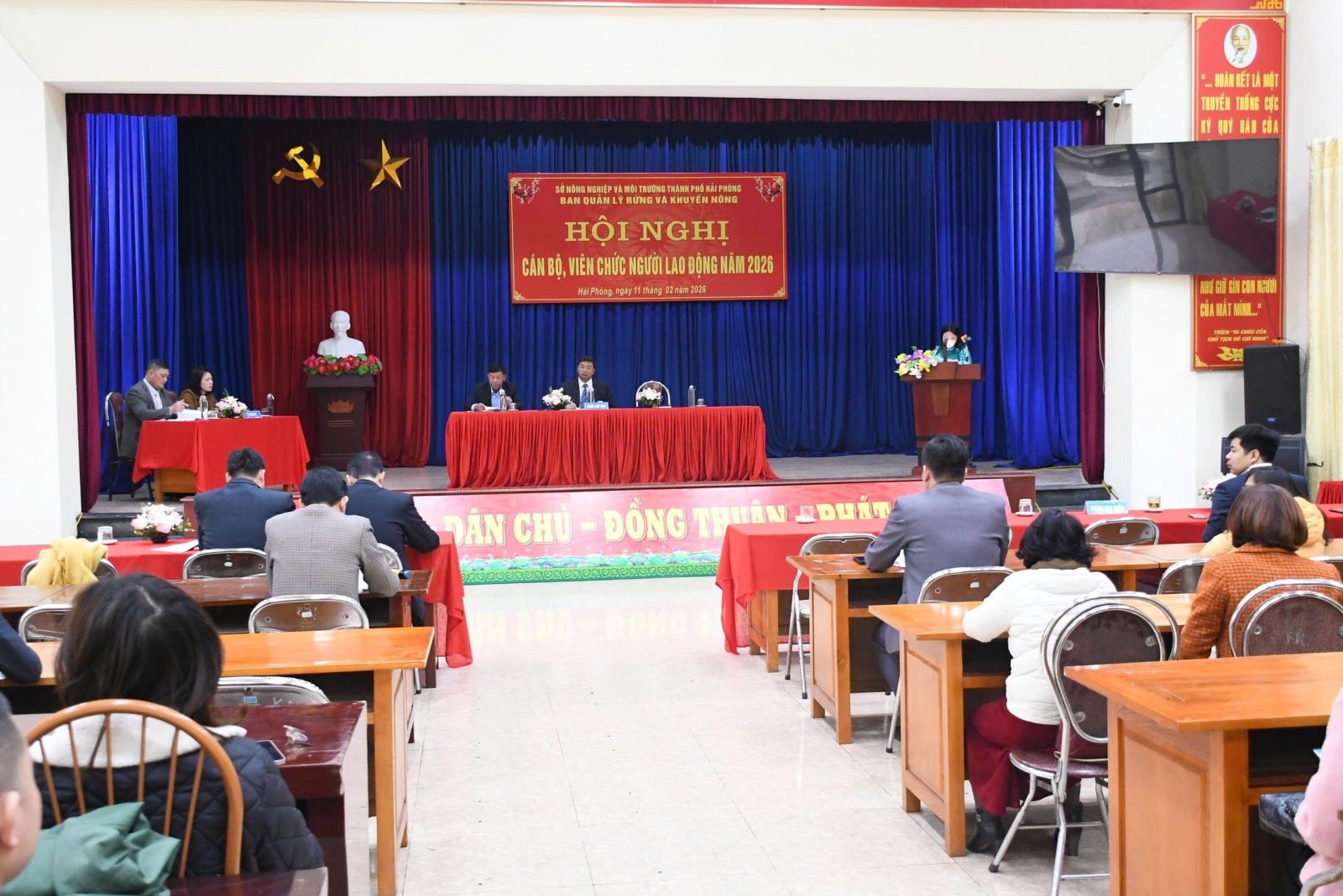 Sáng ngày 11/02/2026, tại Hội trường cơ sở 2 Ban Quản lý rừng và Khuyến nông (phường Trần Hưng Đạo, thành phố Hải Phòng), Ban Quản lý rừng và Khuyến nông đã tổ chức Hội nghị viên chức, người lao động năm 2026. Hội nghị vinh dự được đón tiếp đồng chí Vũ Bá Công - Phó Giám đốc Sở Nông nghiệp và Môi trường đến dự và chỉ đạo. Tham dự Hội nghị còn có toàn thể viên chức và người lao động của đơn vị.