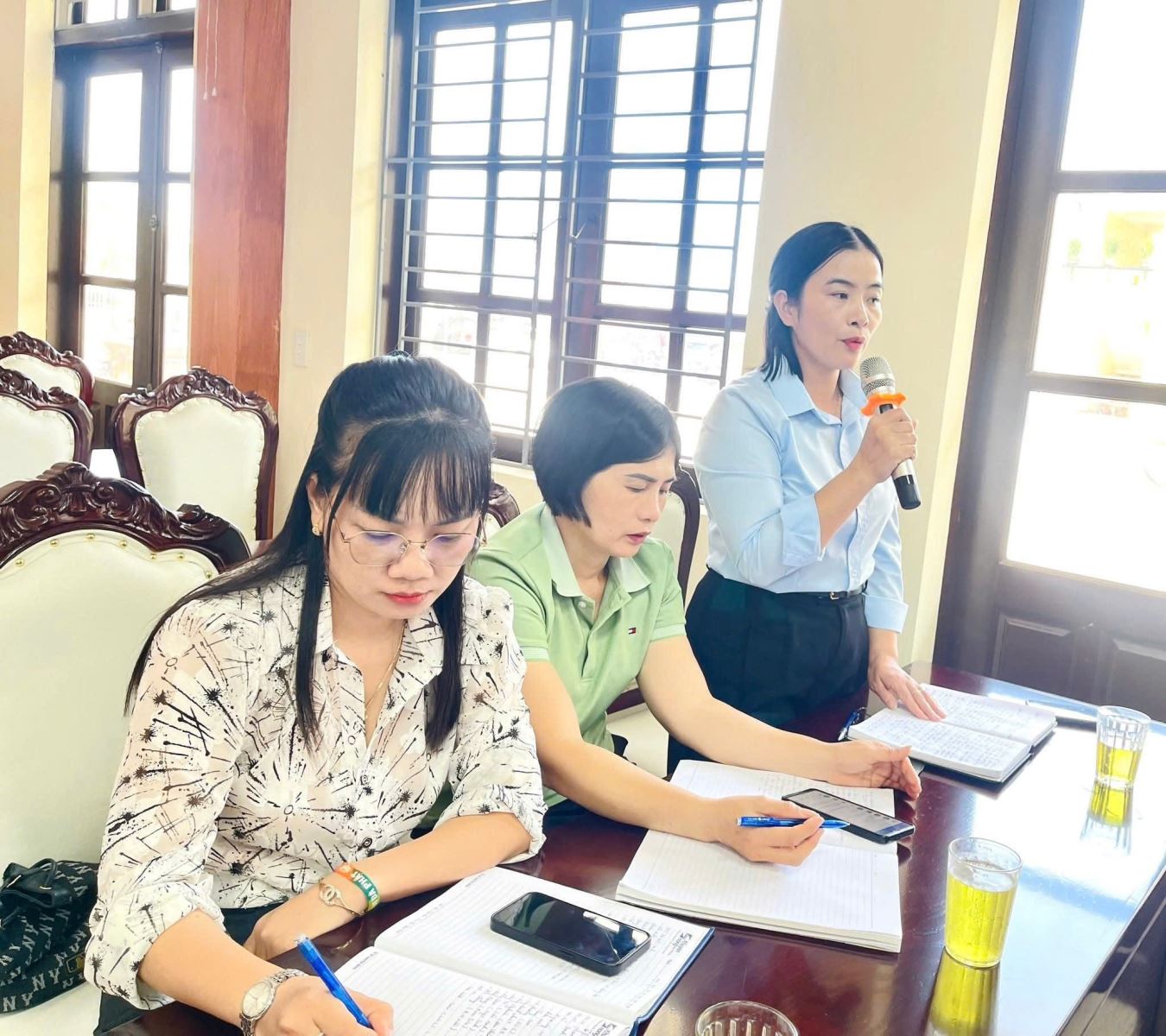 Trong phần thảo luận, các đồng chí trưởng các ban ngành, trưởng thôn đã phản ánh thực tế sản xuất tại địa phương: tình hình sinh trưởng của cây lúa vụ mùa, tình trạng sâu cuốn lá nhỏ, rầy nâu, rầy lưng trắng, cũng như khó khăn trong việc phòng trừ dịch bệnh cho đàn gia súc, gia cầm, công tác thuỷ lợi nội đồng, công tác phối hợp giữa các bên để thực hiện nhiệm vụ chính trị tại địa phương.