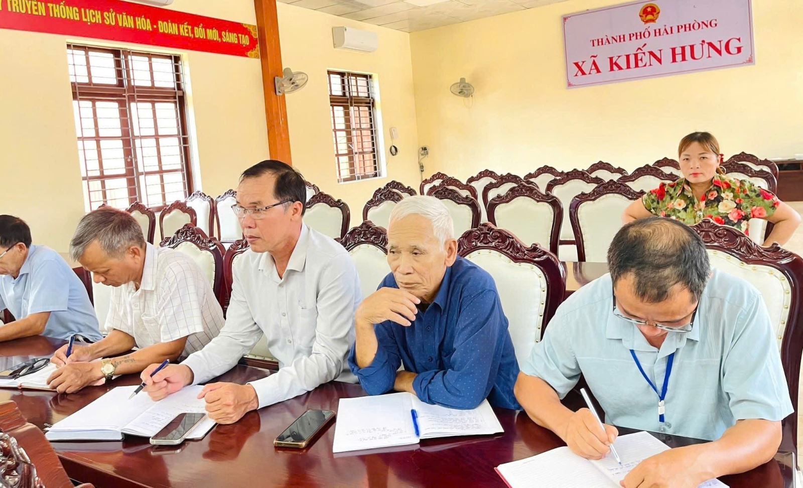 Quang cảnh phiên họp thường kỳ tháng 8 tại UBND xã Kiến Hưng