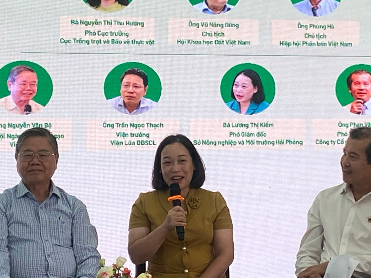 Đặc biệt, tại diễn đàn, bà Lương Thị Kiểm – Phó Giám đốc Sở Nông nghiệp và Phát triển nông thôn Hải Phòng, với vai trò là diễn giả địa phương, đã chia sẻ kinh nghiệm thực tiễn trong công tác quản lý và phục hồi đất canh tác trên địa bàn thành phố. Bà cho biết, Hải Phòng đang triển khai nhiều mô hình nông nghiệp tuần hoàn, trong đó tái sử dụng phụ phẩm nông nghiệp, bón phân hữu cơ vi sinh và khuyến khích sản xuất lúa theo tiêu chuẩn VietGAP, nhằm vừa bảo vệ tài nguyên đất, vừa nâng cao giá trị kinh tế cho nông dân.