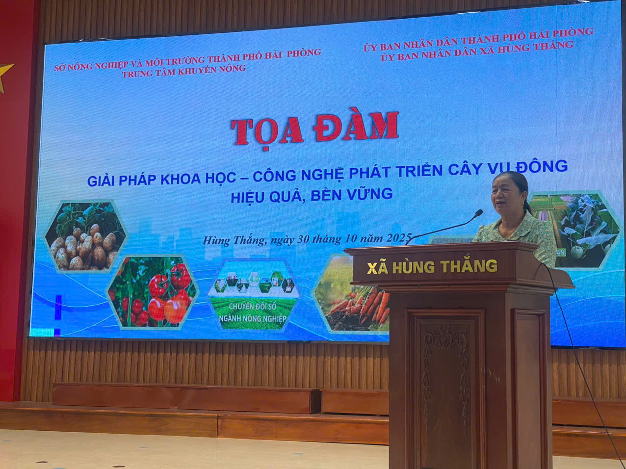 Ngày 30/10/2025, tại Nhà văn hóa xã Hùng Thắng (huyện Tiên Lãng, Hải Phòng), Trung tâm Khuyến nông thành phố Hải Phòng tổ chức Tọa đàm “Giải pháp khoa học – công nghệ phát triển cây vụ Đông hiệu quả, bền vững”.