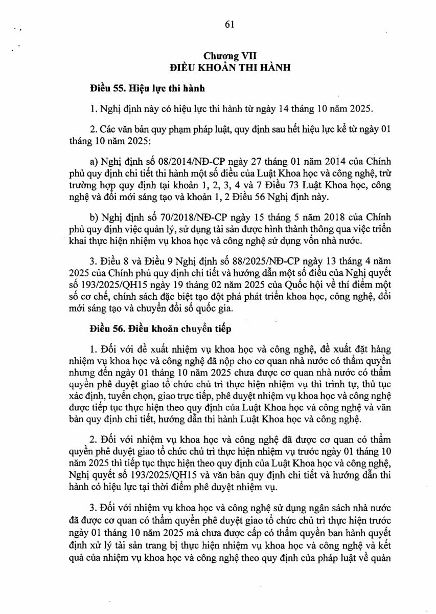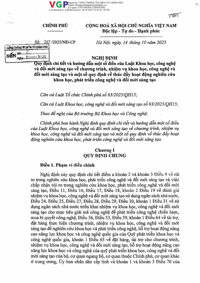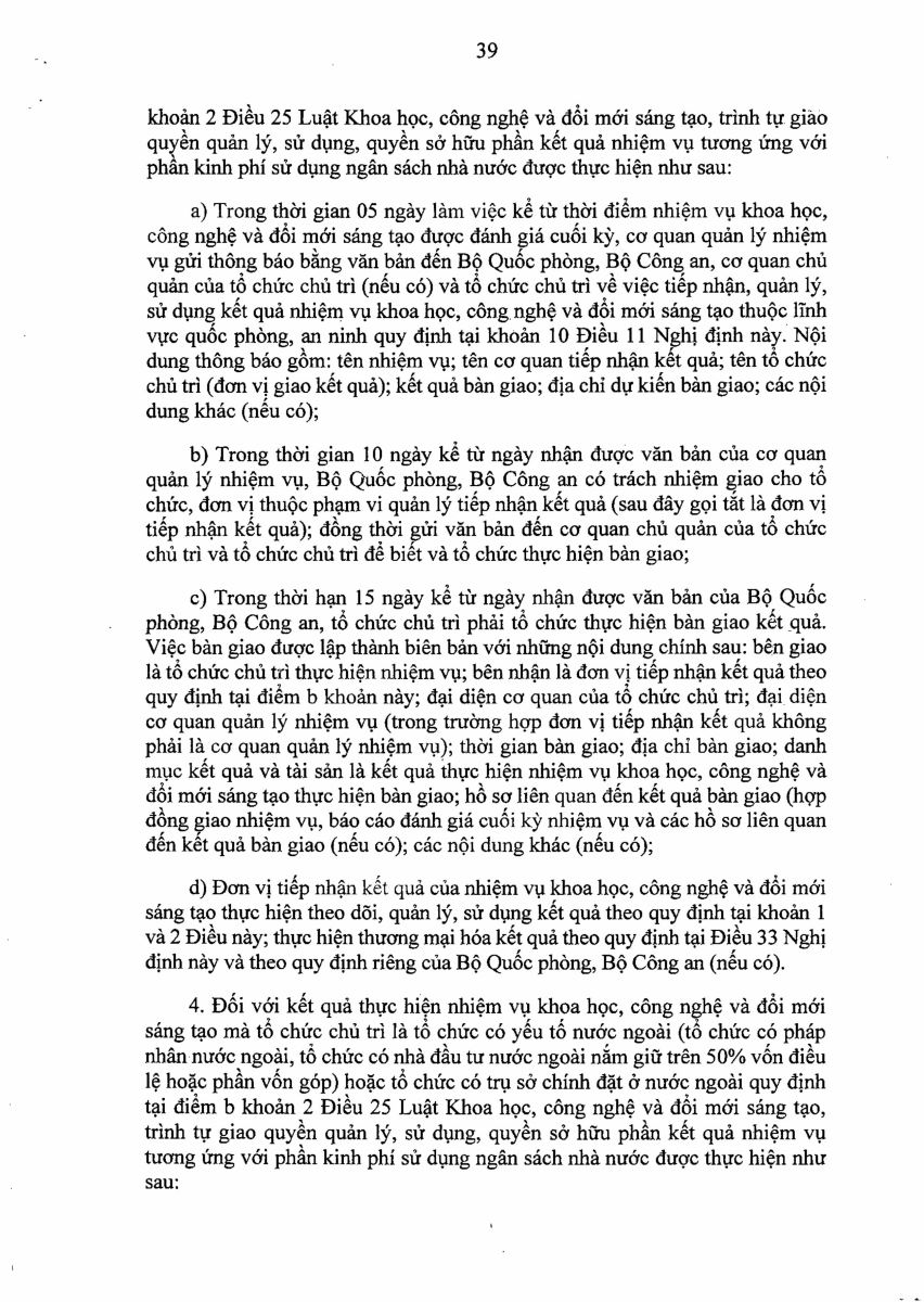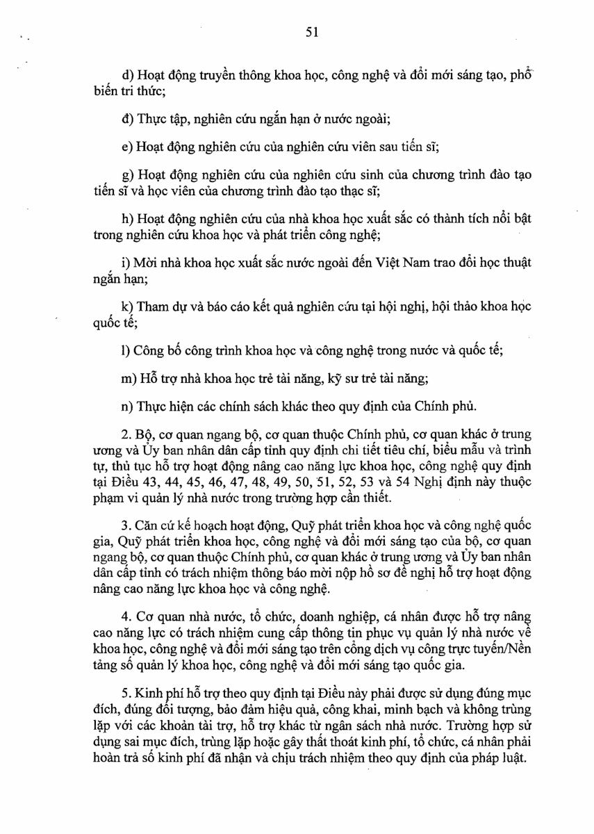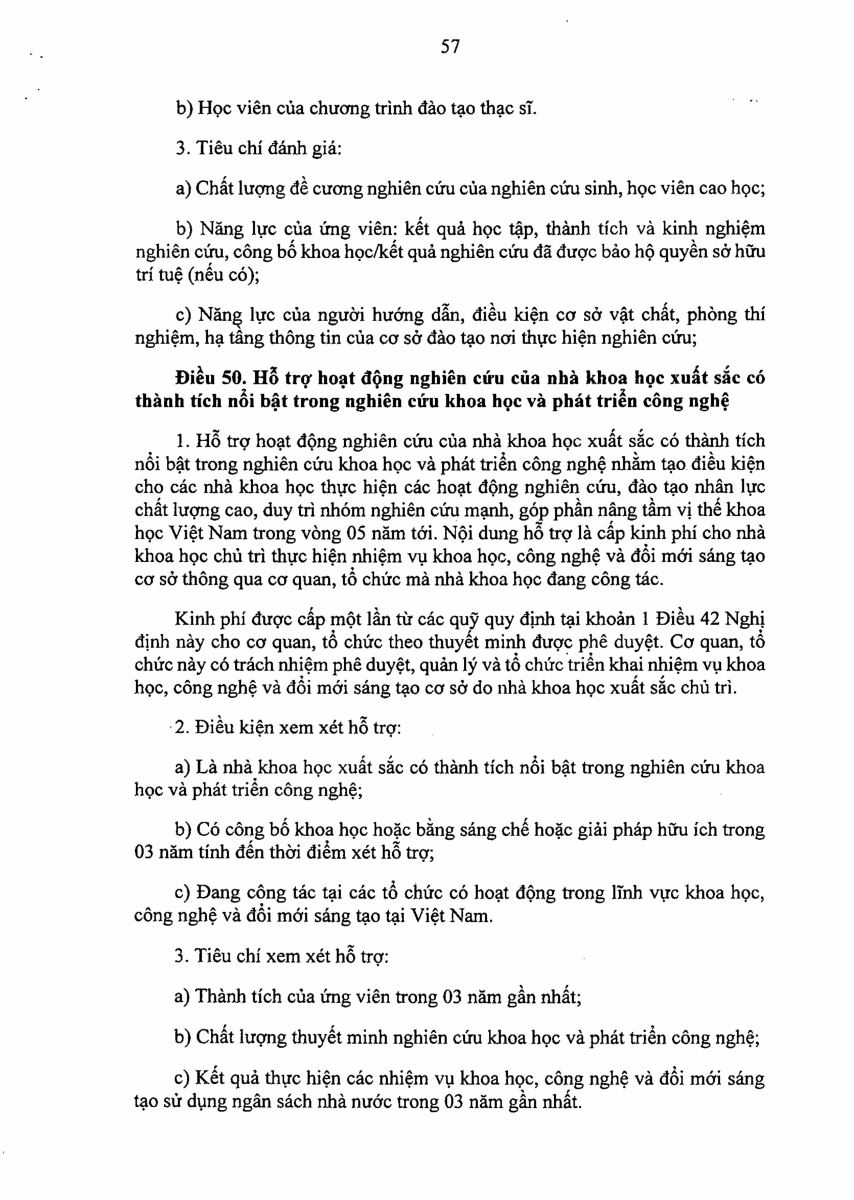 Nghị định quy định chi tiết và hướng dẫn một số điều của Luật KH, CN và đổi mới sáng tạo và một số quy định về thúc đẩy hoạt động nghiên cứu khoa học, phát triển công nghệ và đổi mới sáng tạo