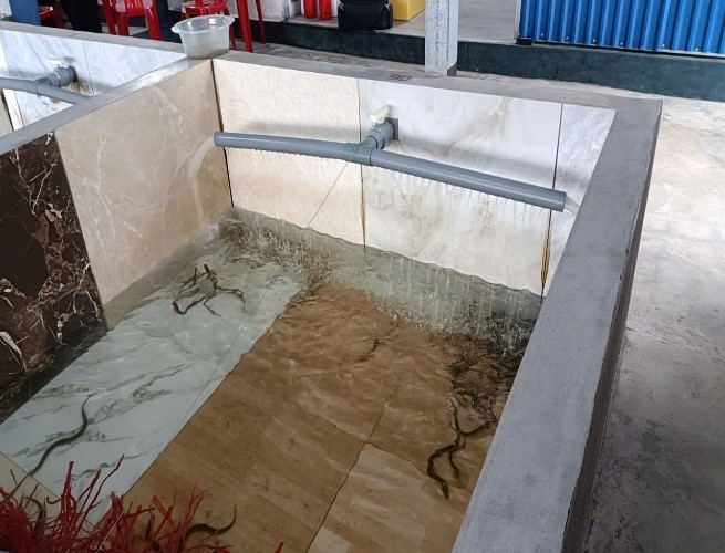 - Thường xuyên vệ sinh bể, giá thể: Bể nuôi lươn yêu cầu nước sạch, hàm lượng oxy hòa tan từ 3-5mg/l. Do mức nước trong bể nuôi lươn thấp chỉ từ 20 - 30 cm mà thức ăn lại giàu đạm nên nước rất dễ bị nhiễm bẩn ảnh hưởng đến tính bắt mồi và sinh trưởng của lươn. Vì vậy, sau khi lươn ăn từ 2 - 3h phải tiến hành thay nước 80-100% lượng nước trong bể và vệ sinh bể nuôi.