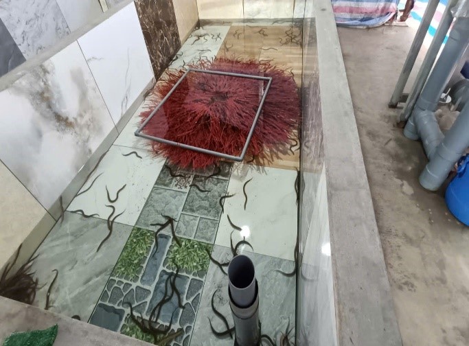 - Khu nhà xưởng có mái che: thiết kế kỹ thuật khu nuôi (bể chứa, lắng diện tích bằng 1/2 - 1/3 diện tích bể nuôi; các bể nuôi; đường đi lại giữa các bể; hệ thống cấp thoát nước...).