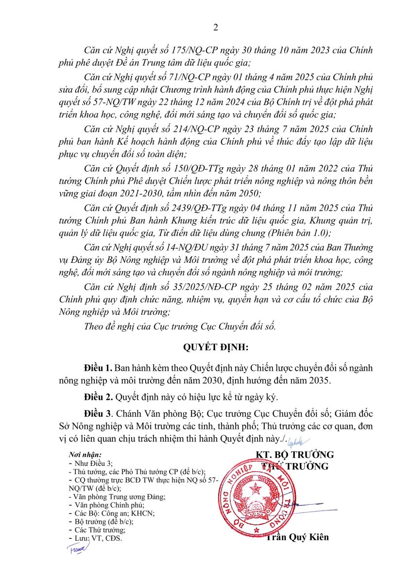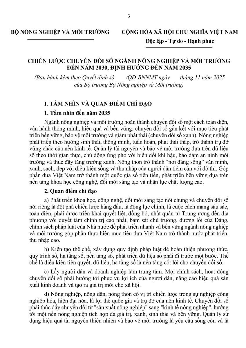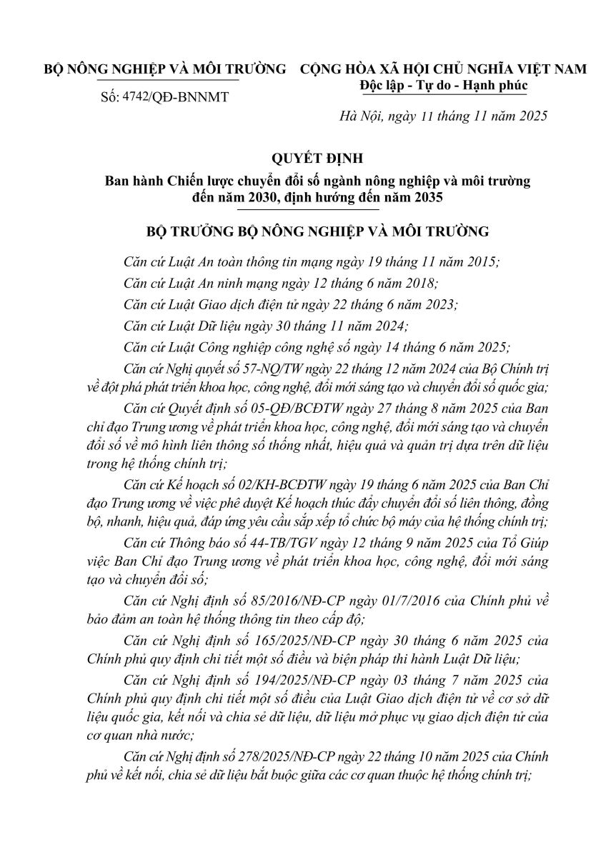 Quyết định số 4742/QĐ-BNNMT ngày 11 tháng 11 năm 2025, về việc ban hành Chiến lược chuyển đổi số ngành nông nghiệp và môi trường đến năm 2030, định hướng đến năm 2035