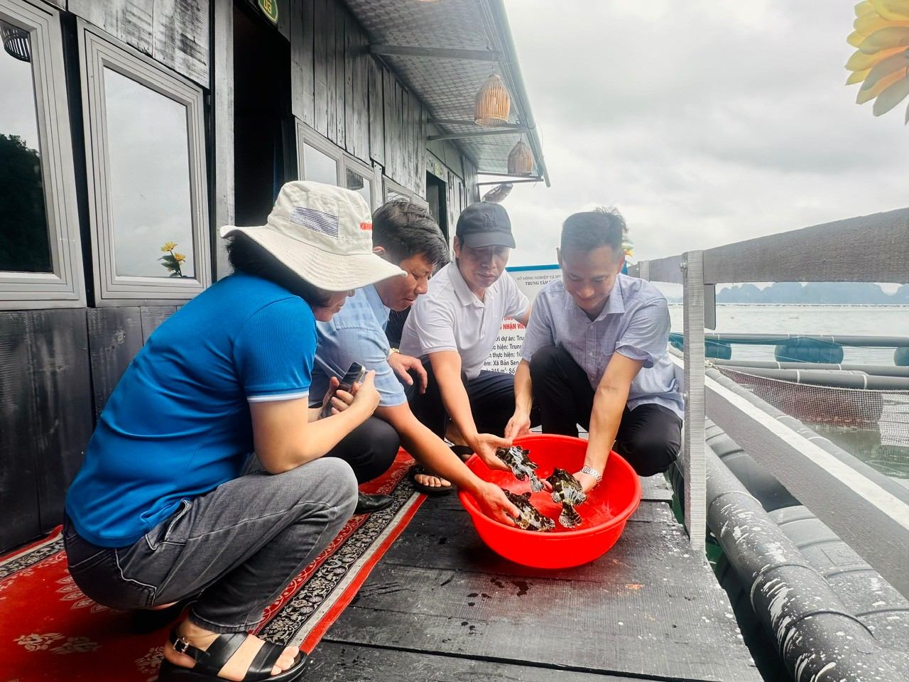 Từ ngày 27-28/8/2025, đoàn đã kiểm tra dự án “Xây dựng Mô hình nuôi cá song (Mú trân châu) bằng lồng HDPE trên biển đạt chứng nhận VietGAP gắn với tiêu thụ sản phẩm” tại đặc khu Vân Đồn, tỉnh Quảng Ninh với quy mô 315 m3 lồng. Hiện nay, đã làm xong các công tác chọn hộ, tập huấn xây dựng mô hình, mua sắm và bàn giao con giống, vật tư, pano biển hiệu đạt yêu cầu. Mục tiêu mô hình nhằm đưa tiến bộ kỹ thuật về lồng HDPE và giống cá mú trân châu vào nuôi trên biển để phát huy tiềm năng lợi thế của địa phương, nâng cao hiệu quả kinh tế cho người dân ven biển.