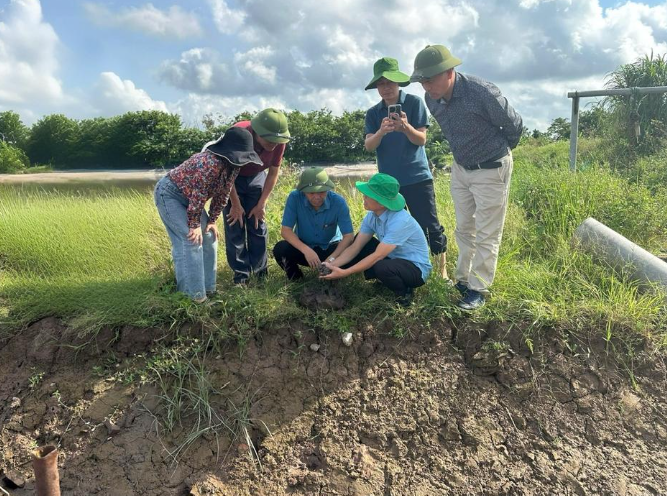 Đoàn công tác kiểm tra mô hình nuôi rươi kết hợp sản xuất lúa tại xã Phụ Dực tỉnh Hưng Yên