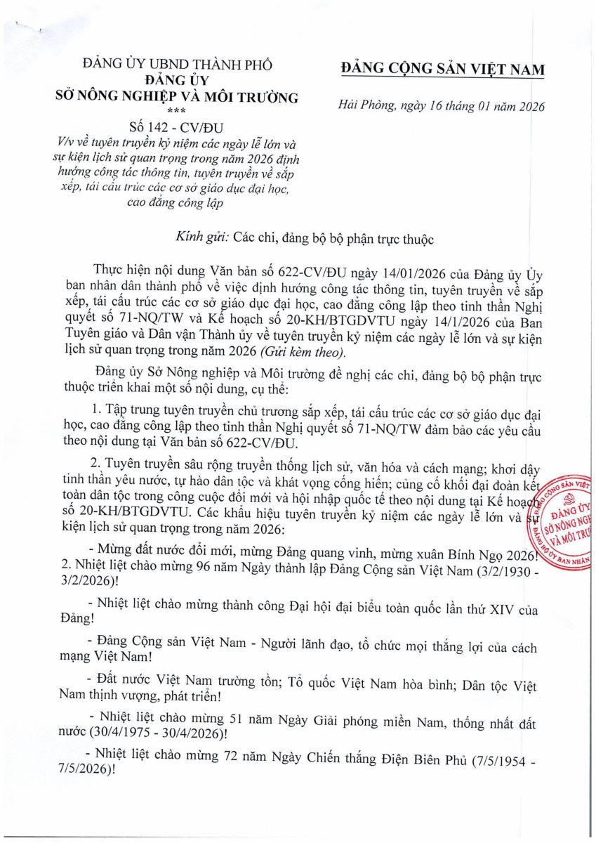 Tuyên truyền kỷ niệm các ngày lễ lớn và sự kiện lịch sử quan trọng trong năm 2026 định hướng công tác thông tin, tuyên truyền về sắp xếp, tái cấu trúc các cơ sở giáo dục đại học, cao đẳng, công lập